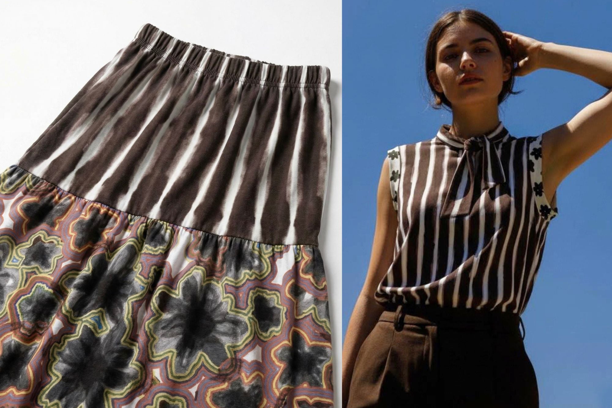 Midi Maxi Skirt - Technicolor Bloom + Black Painterly Stripes
