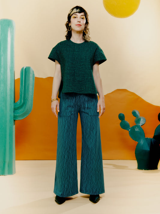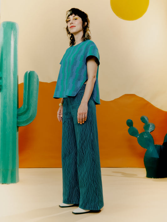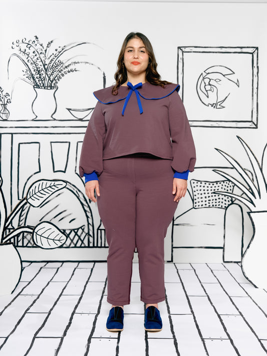 Cropped Drawstring Sweatshirt - Cornflower Spots
