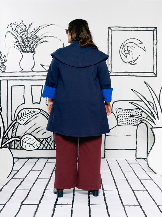 Colorblocked Pom Jacket (Navy, Electric Blue)