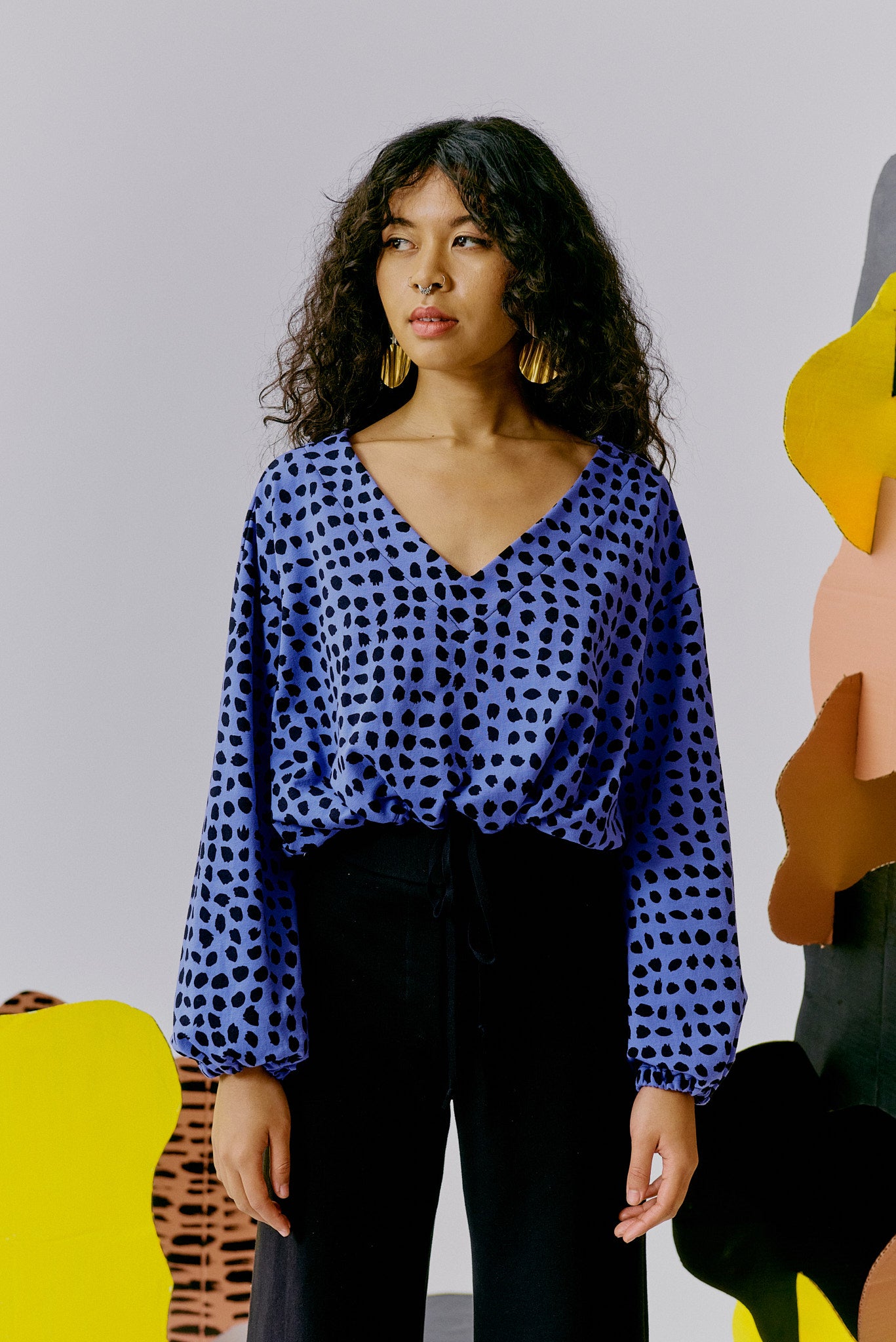 Cropped Drawstring Sweatshirt - Cornflower Spots