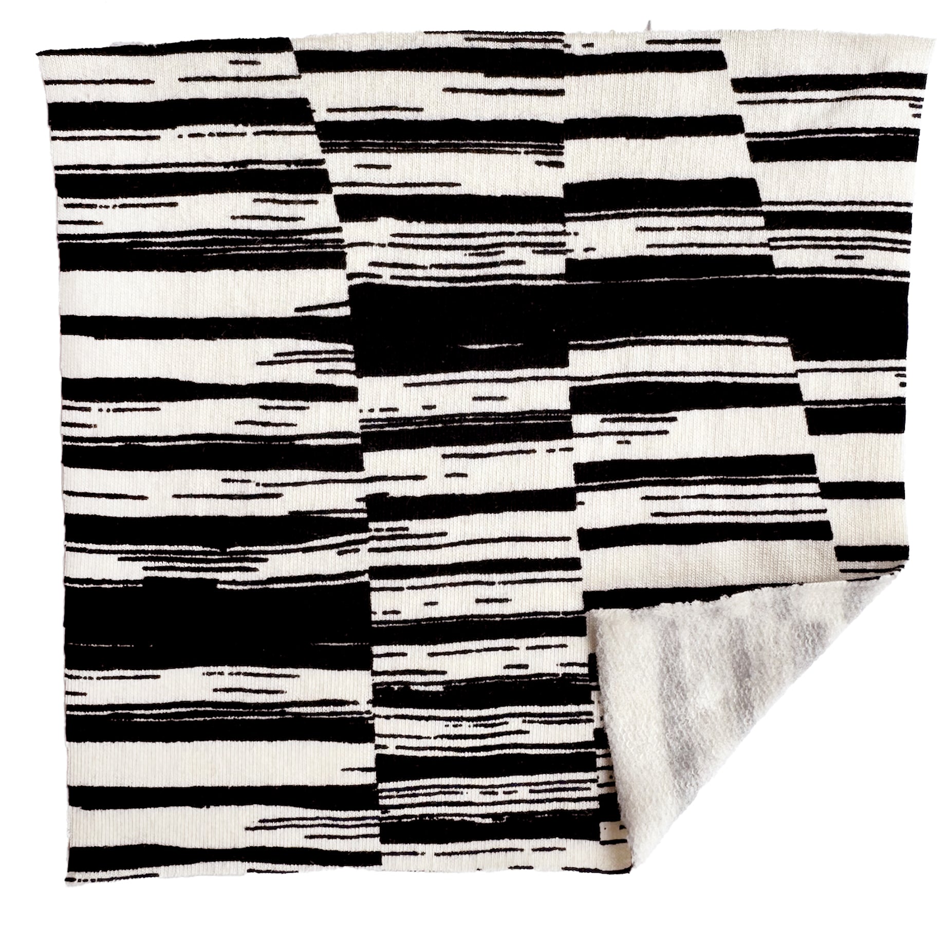 Our Ink Dash print on cream. Our proprietary blend of 14oz 90% Organic Cotton and 10% Spandex. Knitted and dyed printed in the USA. 67.5" wide. Sold by the yard.