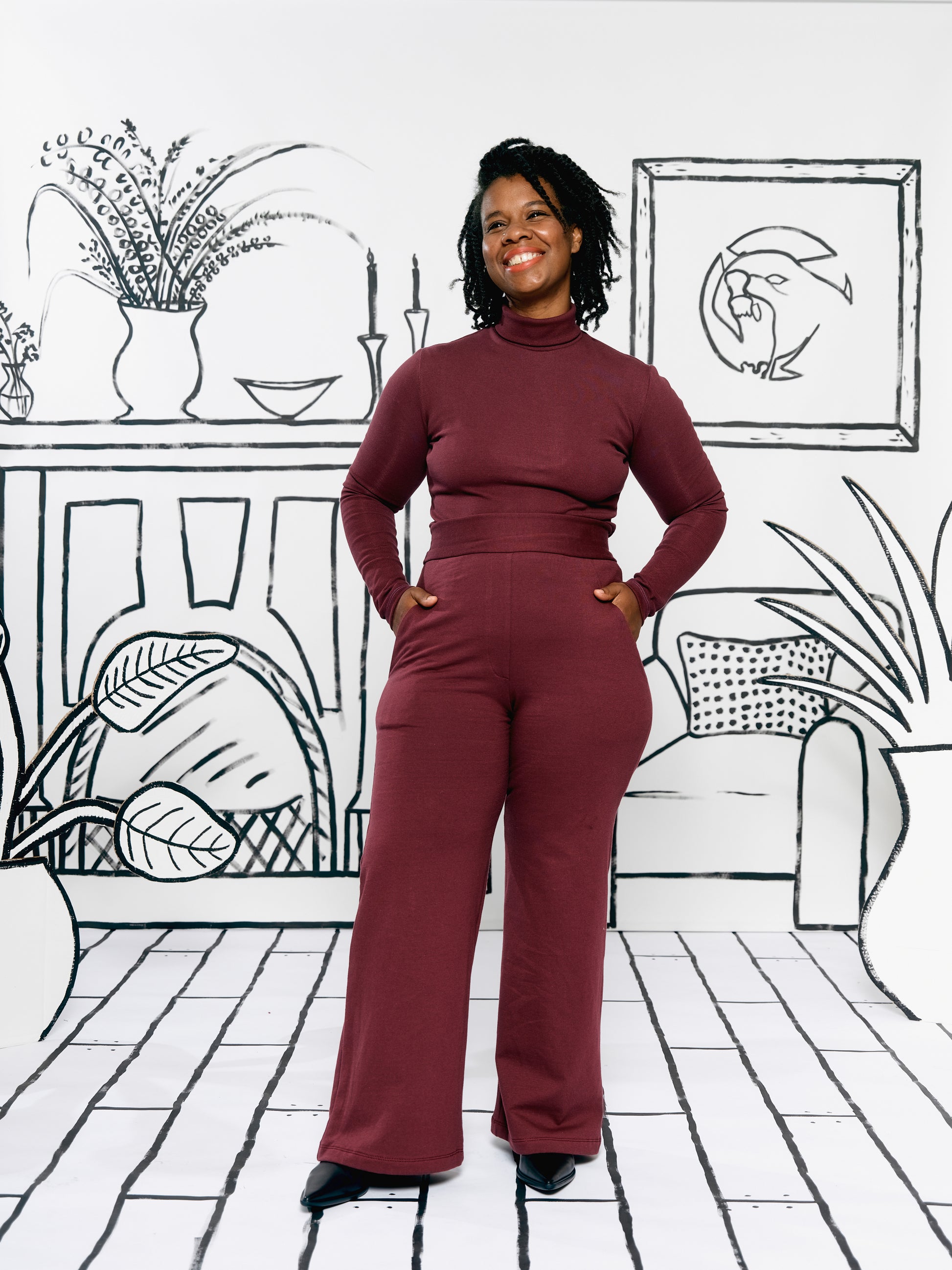 A sweatshirt trouser with no zipper, a built-in elastic waistband, and faux fly that takes you from the couch to cocktails. Wide leg, high-waisted, AND pockets. Secret "sweatpants" you can wear to work? Yes, please!