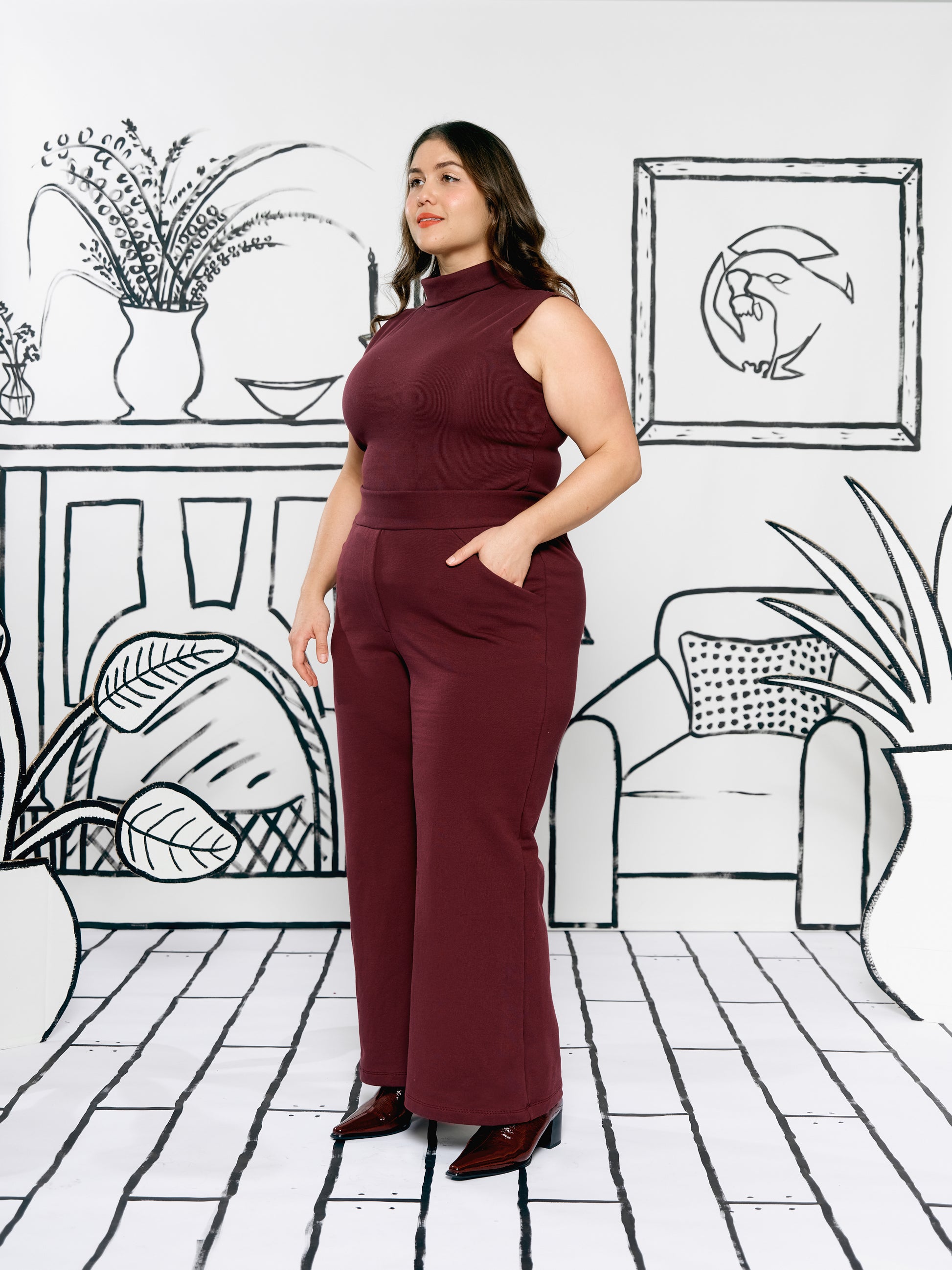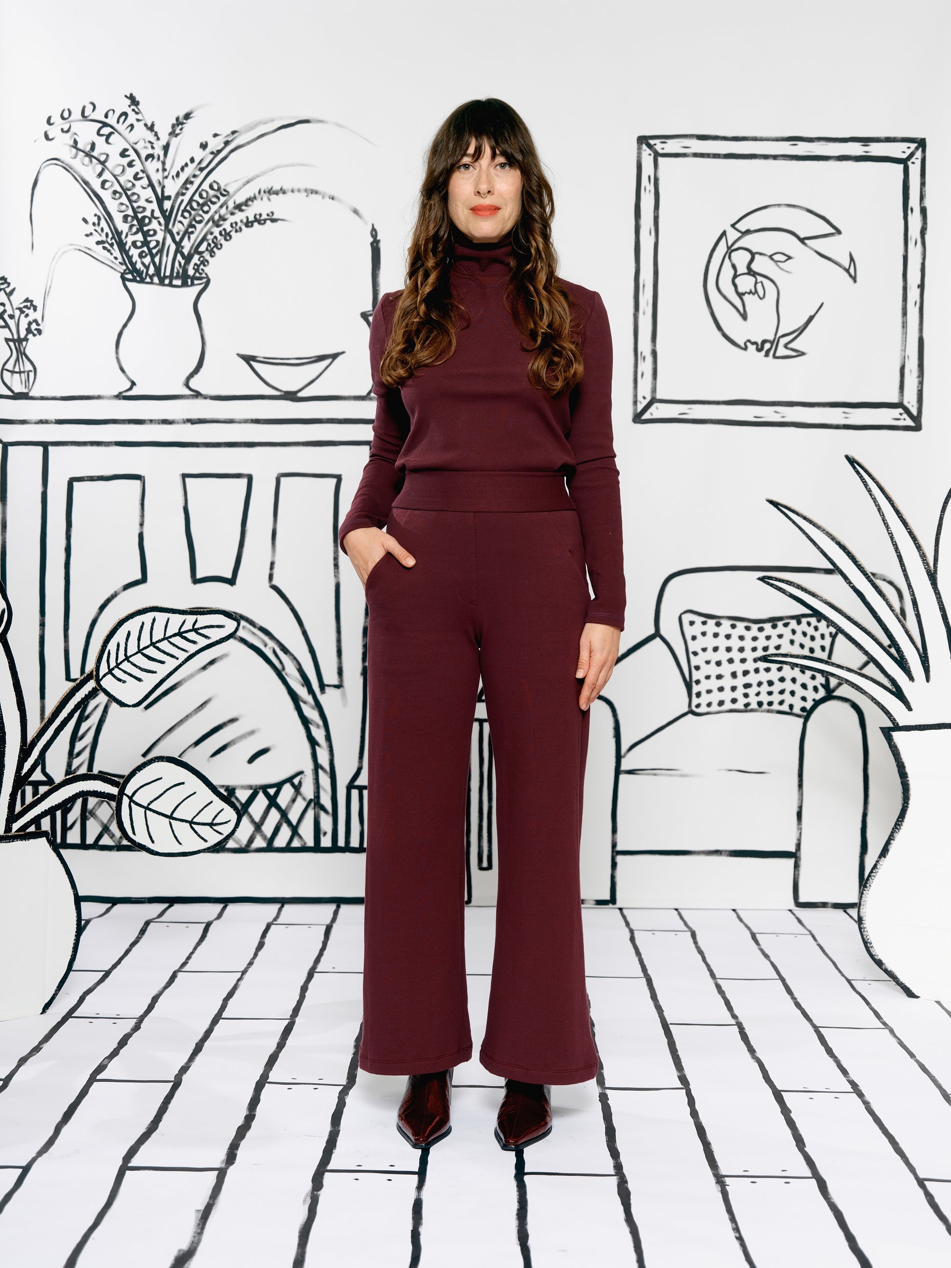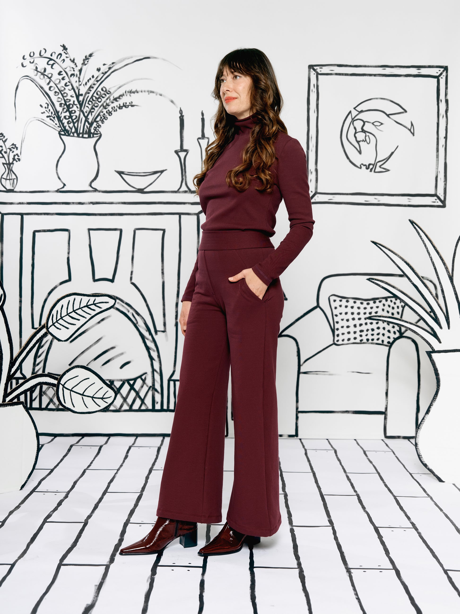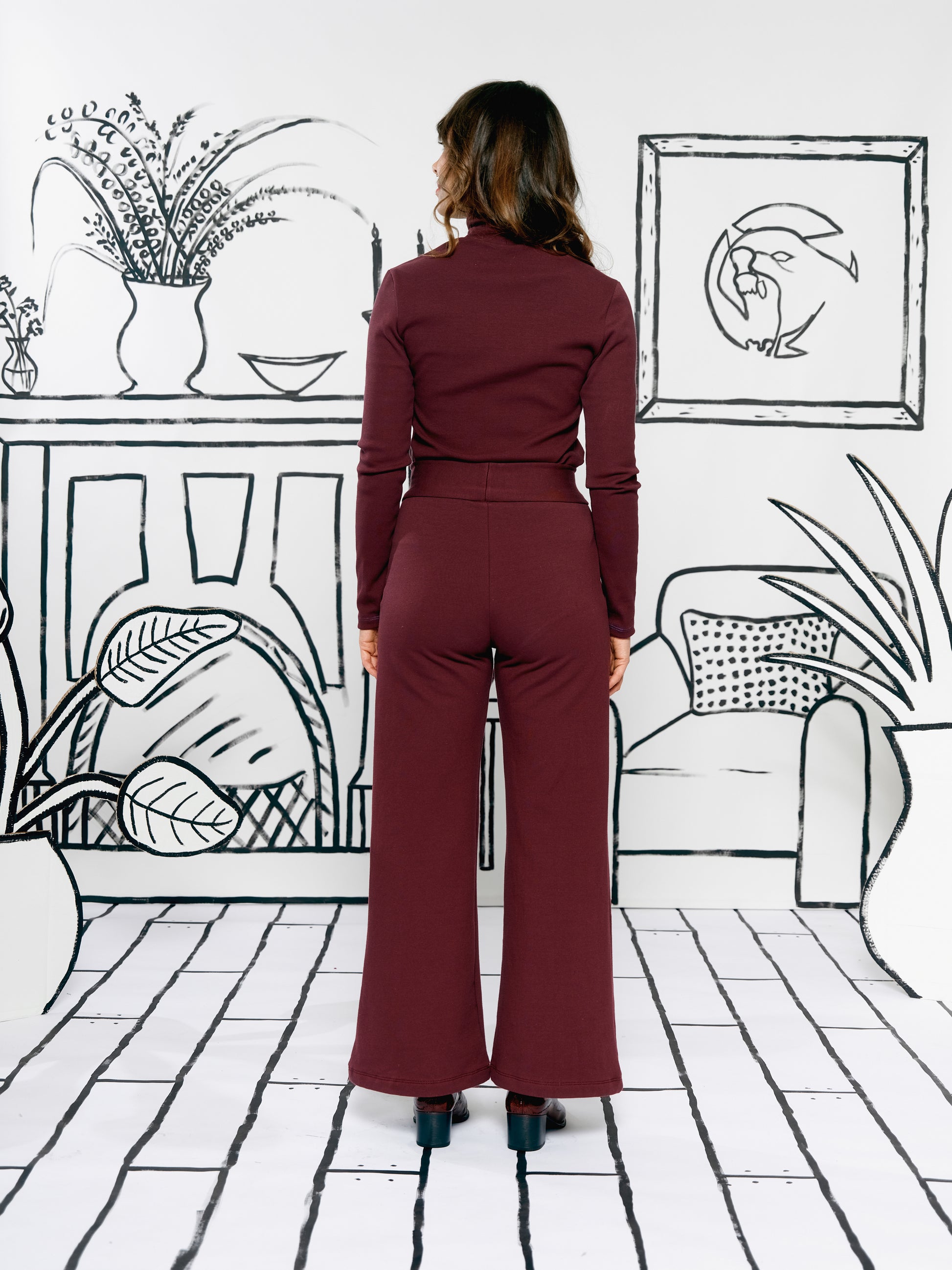 Wide Leg Trousers - Burgundy